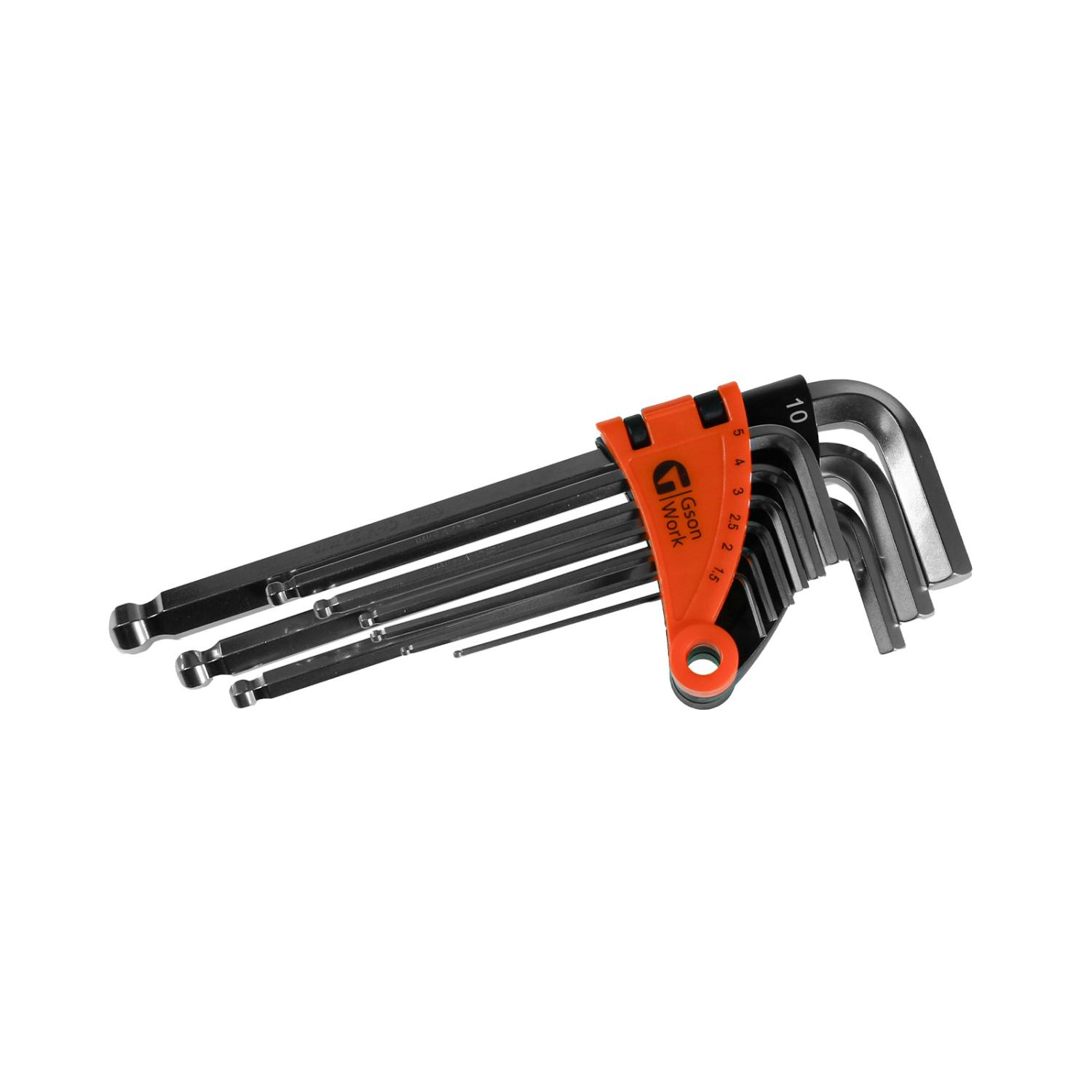 Ball Point Hex Key Set 9 delar 1,5 - 2 - 2,5 - 3 -4 - 5 - 6 - 8 - 10 mm - GSON