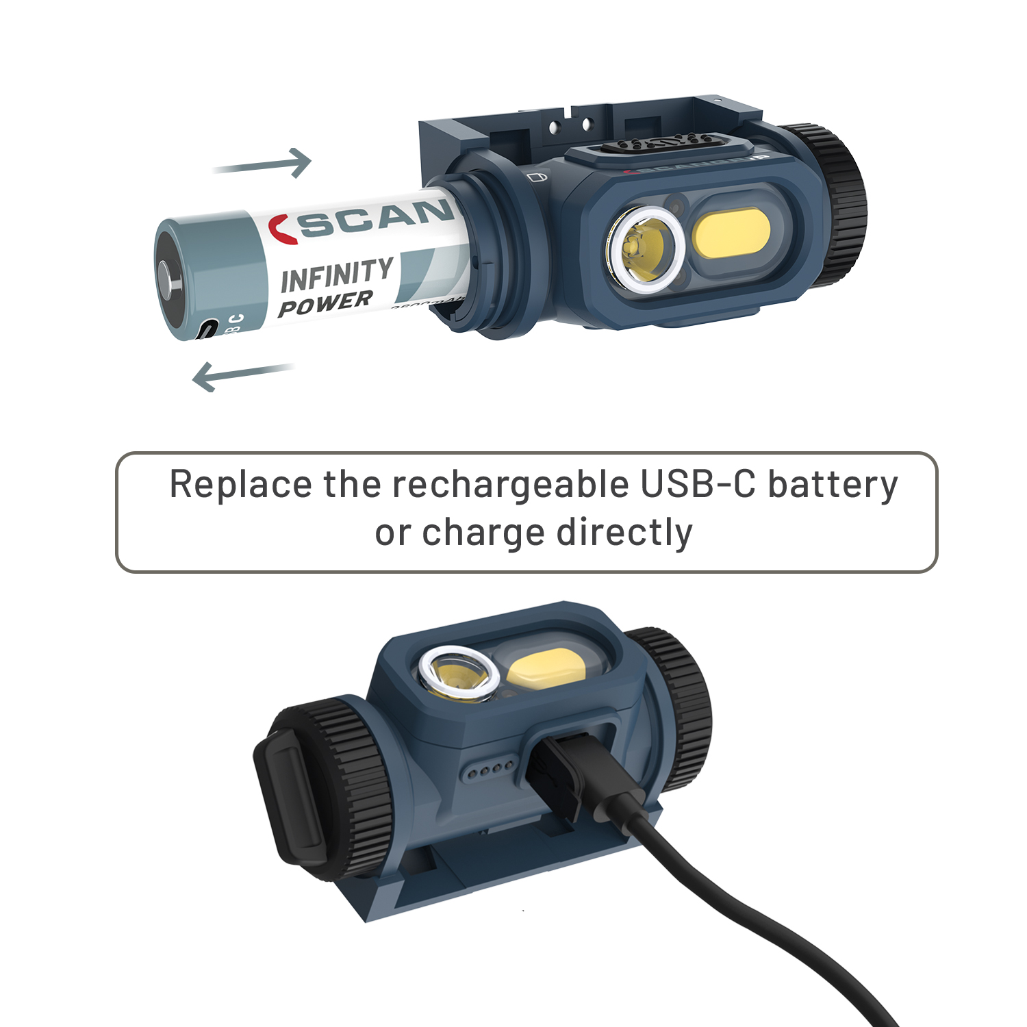 - Levereras med ett uppladdningsbart USB-C-batteri (18650), vilket ger en smart och effektiv laddningslösning, då batteriet kan bytas ut eller laddas på plats.